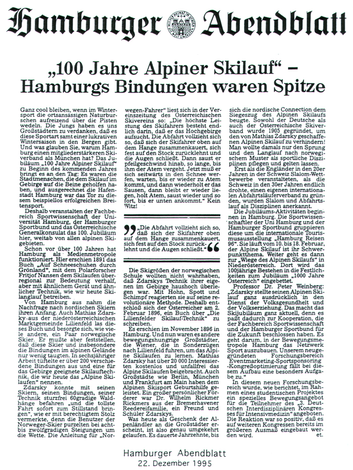 100 Jahre Alpiner Skilauf - Hamburger Bindungen waren Spitze