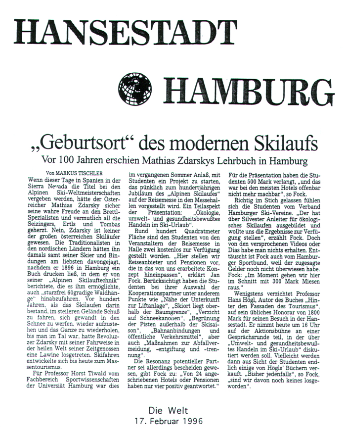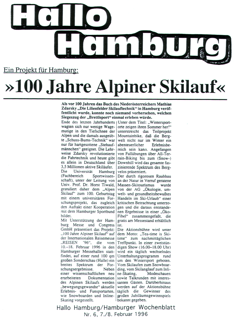 Ein Projekt für Hamburg: 100 Jahre alpiner Skilauf